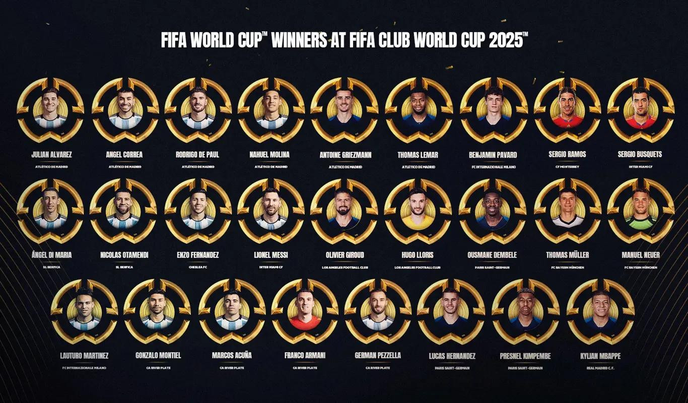Đáng chú ý, giải đấu năm nay quy tụ 26 cầu thủ từng vô địch World Cup, nhiều hơn so với số lượng các nhà vô địch thế giới thi đấu tại hai kỳ World Cup 2018 và 2022.