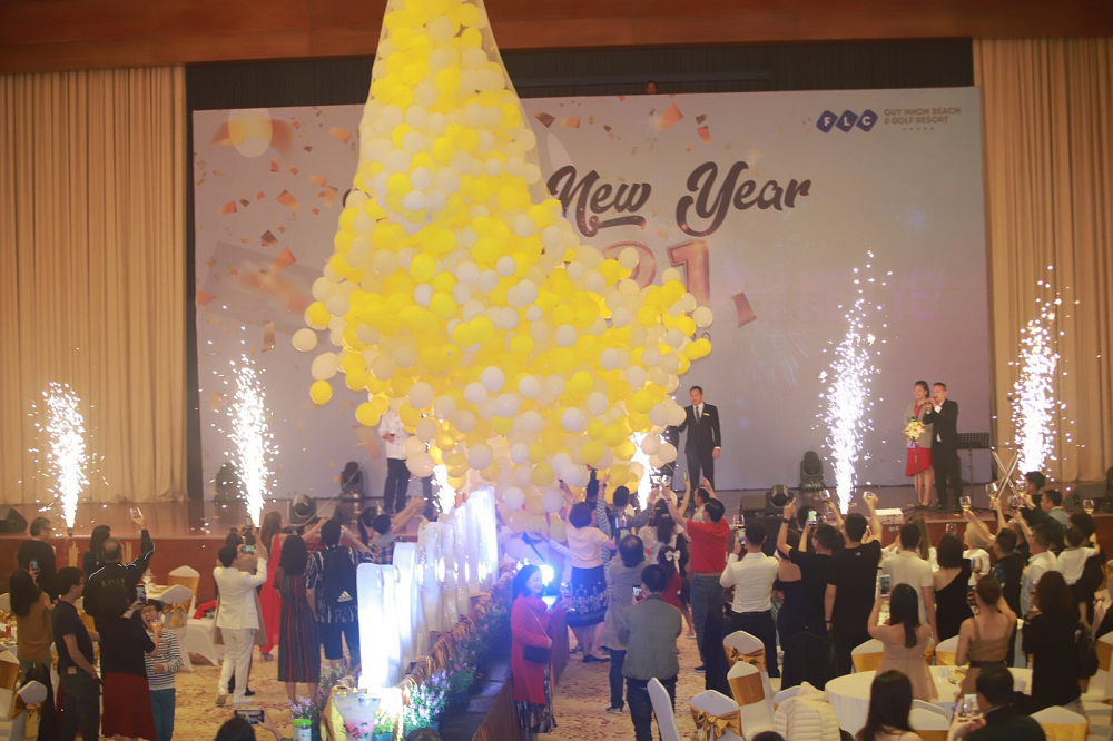 Được tổ chức trong nhà nhưng tiệc Countdown tại FLC Quy Nhơn không vì thế mà giảm bớt sự náo nhiệt với chương trình giải trí ấn tượng và những phần quà hấp dẫn cho du khách