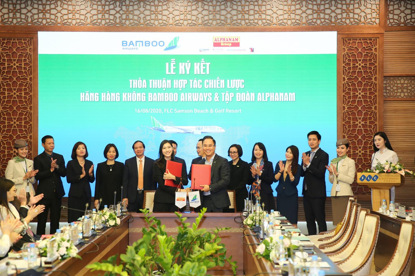 Alphanam và hãng hàng không Bamboo Airways cũng chính thức ký biên bản hợp tác, với nội dung Alphanam sẽ trở thành khách hàng doanh nghiệp của Bamboo Airways, cùng những chính sách ưu đãi được áp dụng riêng biệt, nhằm mang tới những trải nghiệm dịch vụ bay chất lượng cao dành cho cán bộ nhân viên Alphanam cũng như đối tác.