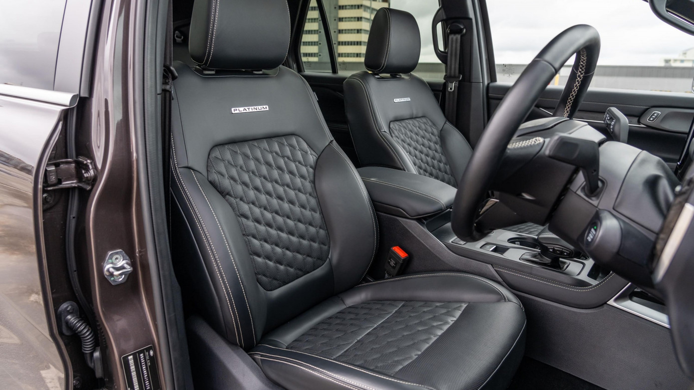 Các trang bị ngoại thất khác của Platinum gần như không thay đổi so với Titanium, bao gồm cụm đèn LED ma trận, đèn sương mù LED và các chi tiết viền crôm. Trong khi đó, nội thất của Everest Platinum được nâng cấp với hệ thống âm thanh Bang & Olufsen 12 loa, vật liệu da cao cấp và ghế được tích hợp tính năng thông gió và sưởi ấm cho cả hai hàng ghế trước và sau.