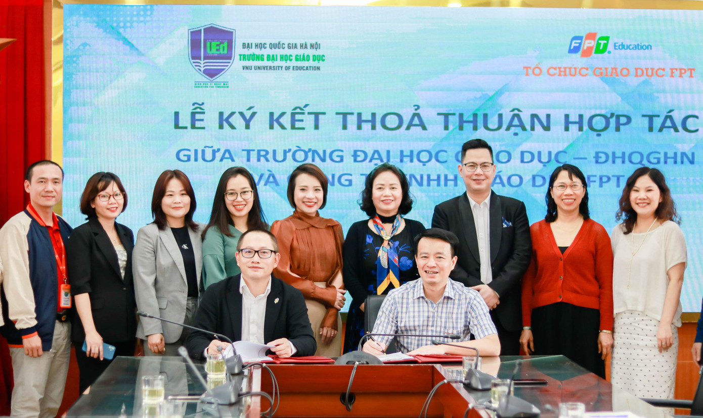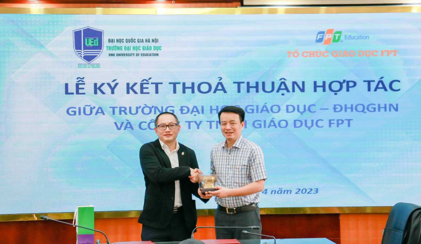 Sáng nay (26/04/2023), Tổ chức Giáo dục (FPT Education) đã có buổi ký kết biên bản thỏa thuận hợp tác với Trường Đại học Giáo dục – Đại học Quốc Gia Hà Nội (ĐH Giáo dục). Lễ ký kết được diễn ra tại ĐH Giáo dục với đại diện là TS. Nguyễn Đức Huy – Phó hiệu trưởng ĐH Giáo dục và TS. Nguyễn Xuân Phong – Phó hiệu trưởng Trường Đại học FPT, kiêm Giám đốc Hệ thống Trường Phổ thông FPT.