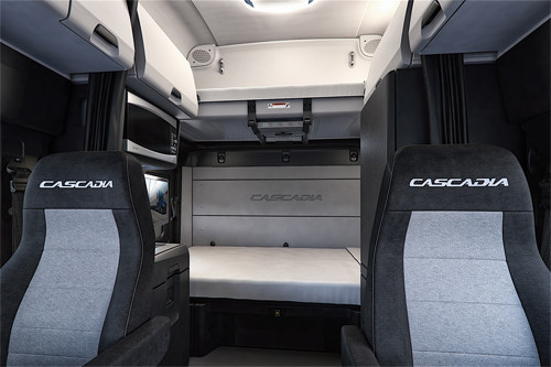DTNA cộng tác với Teague, nhà thiết kế nội thất máy bay Boeing, phát triển nội thất của Cascadia mới. Ngoài ra là những nâng cấp ở lối ra, vào cho tài xế, đèn LED mới trên trần xe giúp giảm sự căng mỏi mắt. Cascadia còn có những tùy chọn giúp cá tính hóa không gian sống, gồm khu ngủ nghỉ thiết kế lại với nhiều ngăn tủ hơn, không gian rộng hơn để có thể phù hợp với những tiện nghi sống tiêu chuẩn. Để giải trí là giá treo tivi có thể gập gọn và treo được màn hình phẳng 26 inch.