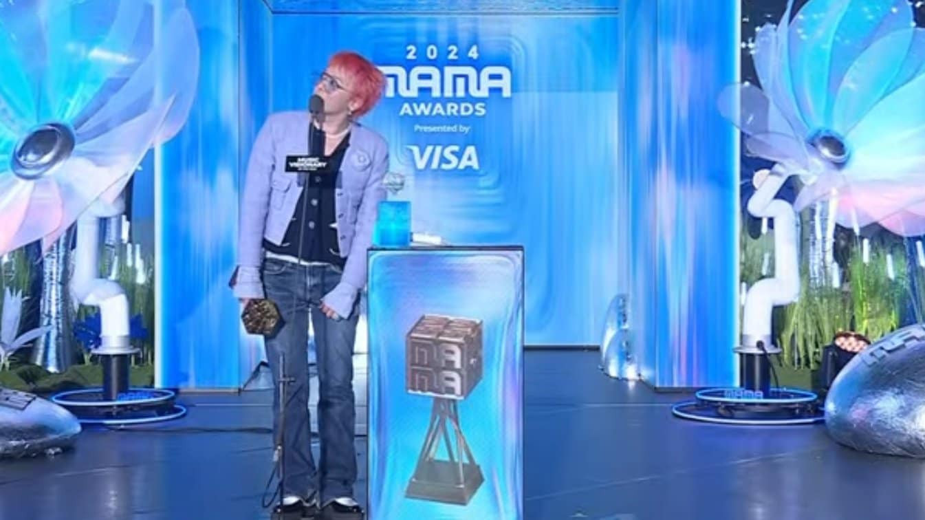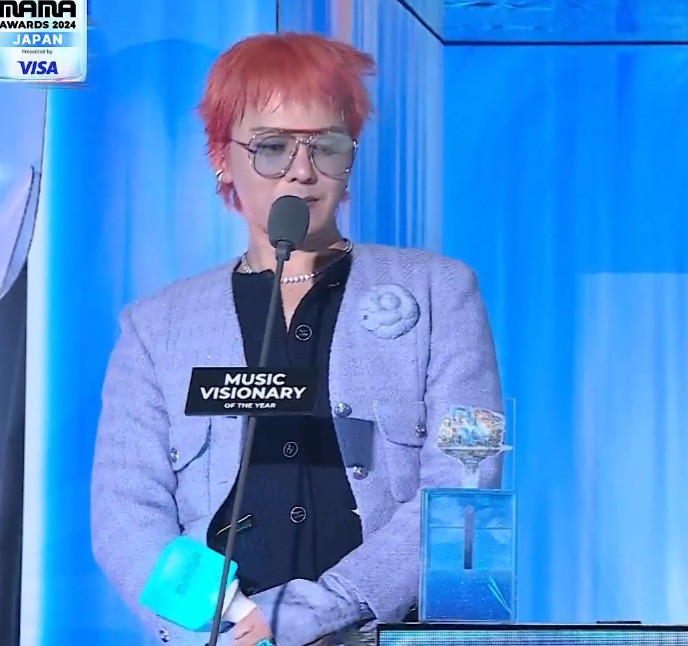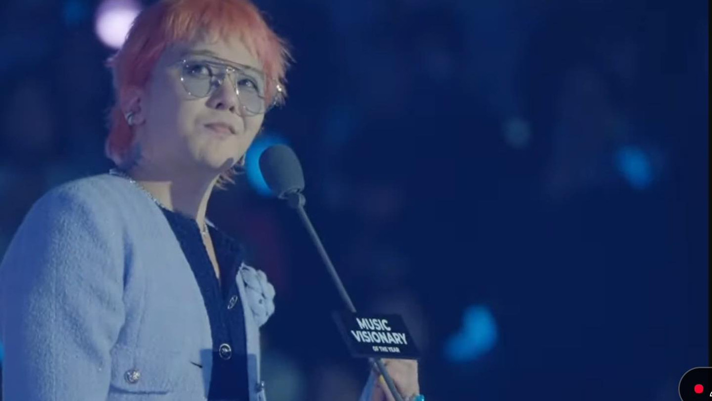 Tiếp đó, G-Dragon nhận giải thưởng ở hạng mục Music Visionary of the Year (Tầm nhìn âm nhạc của năm). G-Dragon xuất hiện với diện mạo trẻ trung trong tông màu xanh pastel. Anh lăng xê thiết kế áo khoác dạ có chi tiết hoa trà đặc trưng của nhà mốt Chanel, phối với kính mắt cùng tông.