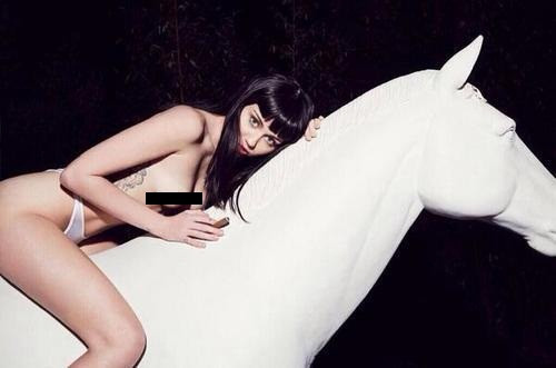 'Gái hư' Miley Cyrus khoe ngực trần bên ngựa trắng