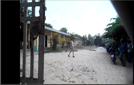 Chúng tôi rời cụm casino giải trí phức hợp, theo Quốc lộ 1 của Campuchia đi sâu vào nội địa đất nước Chùa tháp khoảng 3 km. Khi còn cách chợ cũ Bavet khoảng 700 mét, gã xe ôm bất ngờ rẽ trái vào một con đường đất đỏ đầy ổ gà.