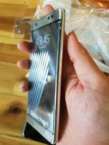 Ảnh mô hình Galaxy Note 7 màu vàng với màn hình cong tràn viền. Ảnh: Onleaks.