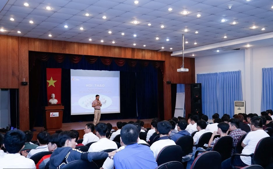 Trong khuôn khổ ngày hội, còn diễn ra hội thảo “Tư vấn kỹ năng viết hồ sơ và phỏng vấn xin việc”. Tại hội thảo, các bạn sinh viên đã nghe được các khách mời chia sẻ về kinh nghiệm khi viết CV cũng như kỹ năng phỏng vấn khi tham gia ứng tuyển.