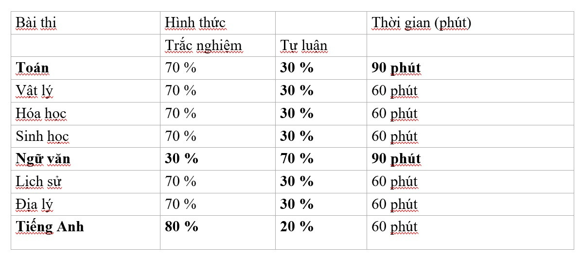 Nội dung các bài thi tương ứng và phù hợp với nội dung các môn học, môn thi cấp THPT mà học sinh đã quen thuộc; thí sinh làm bài thi trực tiếp trên giấy.