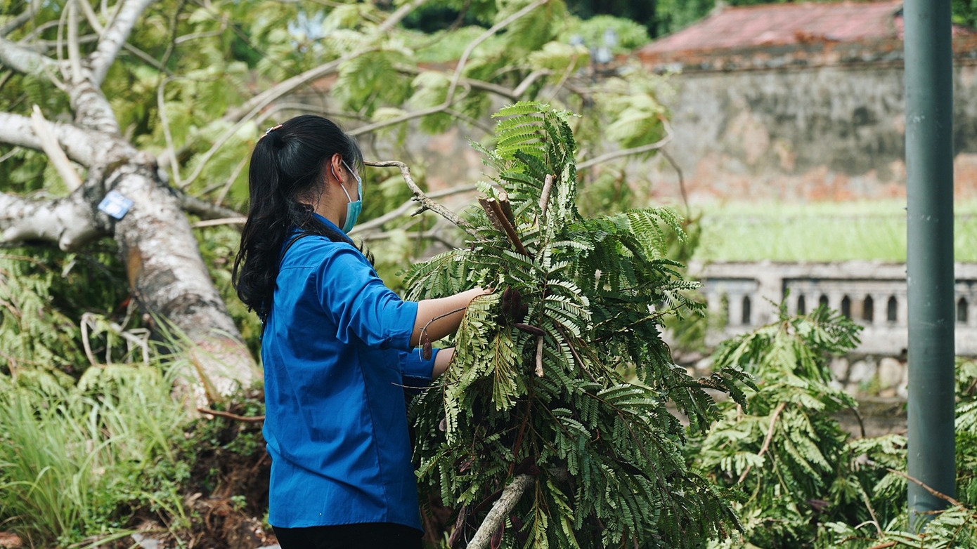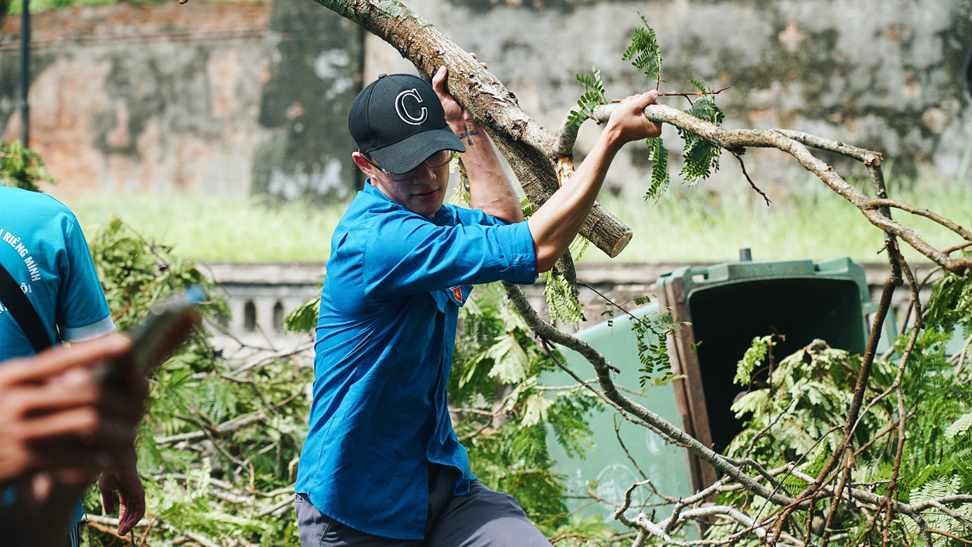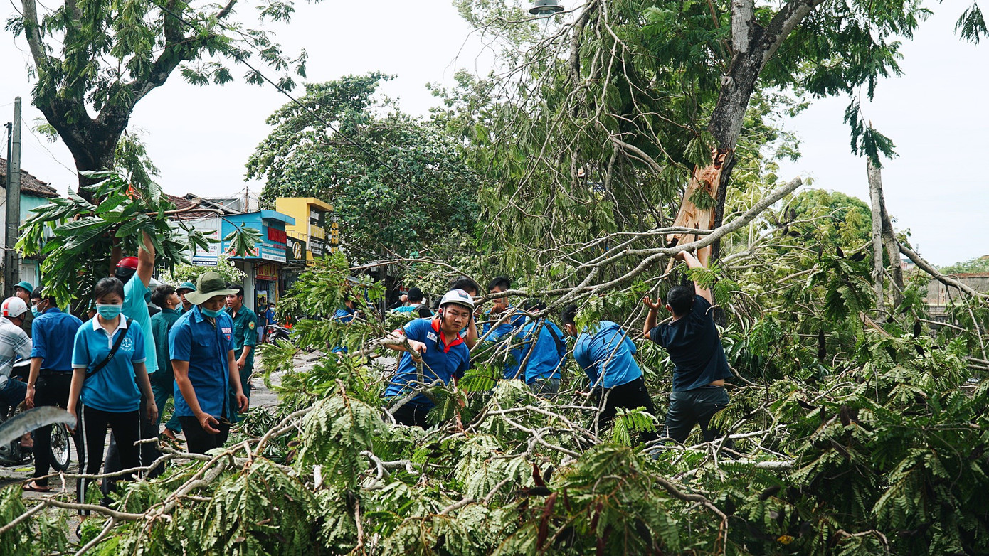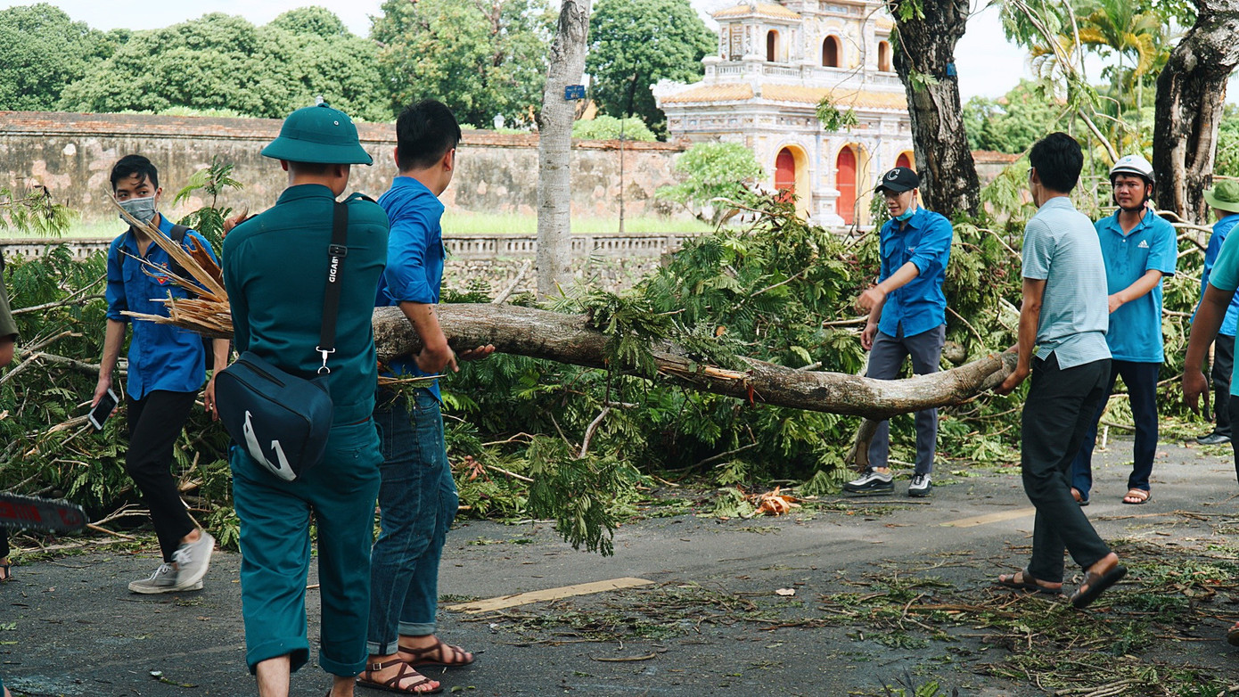 Theo anh Trần Gia Công, Bí thư Tỉnh Đoàn TT-Huế, ngay sau khi mưa bão đi qua, lực lượng ĐVTN trên toàn địa bàn đã có mặt tại nhiều điểm nóng để hỗ trợ lực lượng chuyên trách thuộc Trung tâm Cây xanh TP Huế cưa cắt, dọn dẹp, thu gom nhiều cây xanh đổ ra đường, trùm lên nhà dân, công trình công cộng… nhằm góp phần bảo đảm an toàn đi lại, sinh hoạt cho người dân, cũng như trả lại mỹ quan đô thị.