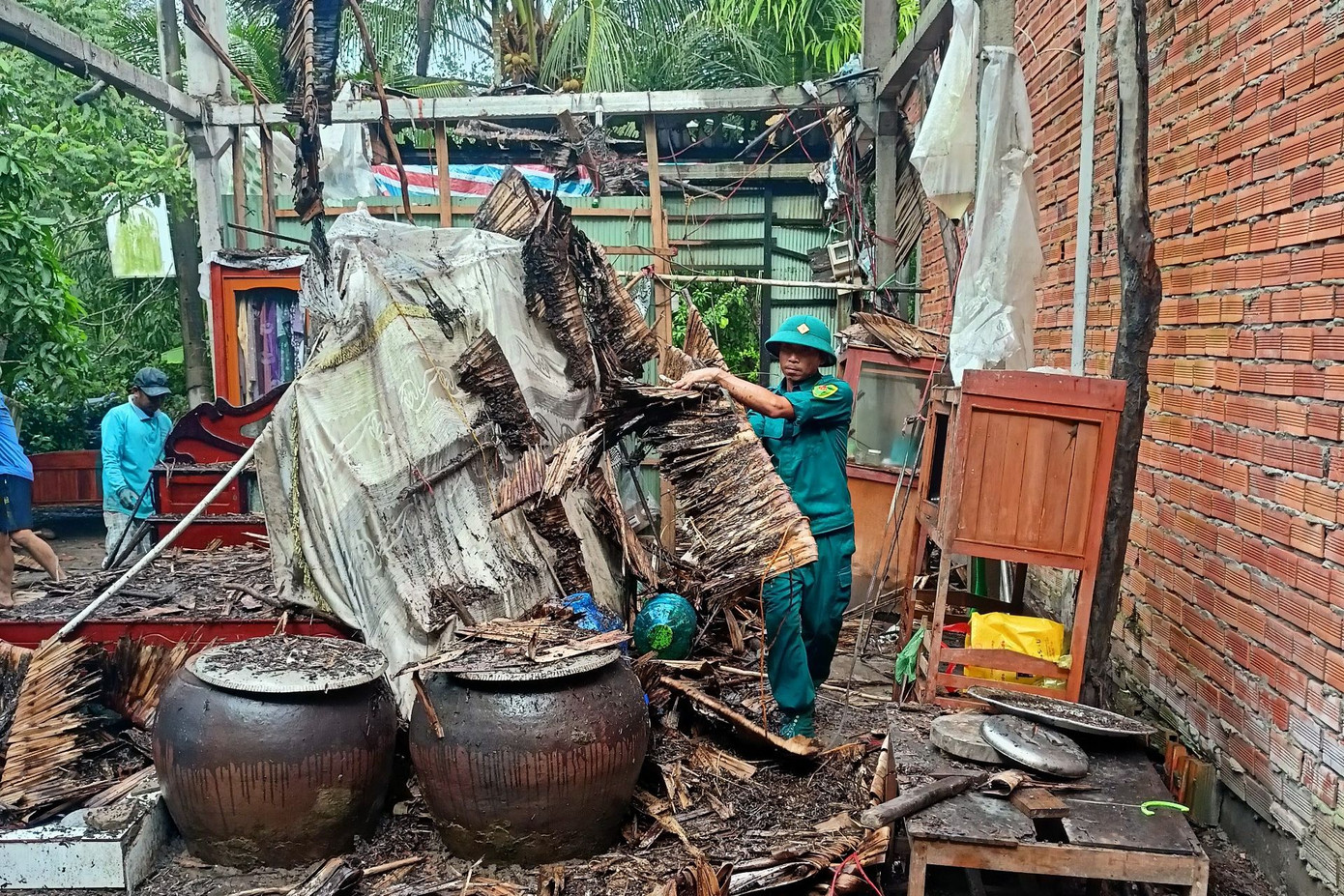 | Ban Chỉ huy quận huyện Gò Quao (Kiên Giang) hỗ trợ cho gia đình bị ảnh hưởng bởi thiên tai. Ảnh: PV. |