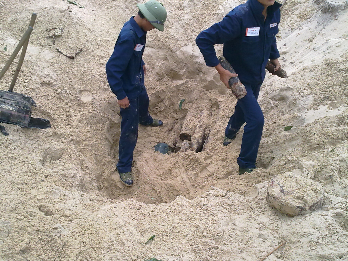 | Rà phá bom mìn. Ảnh do VBMAC cung cấp. |
