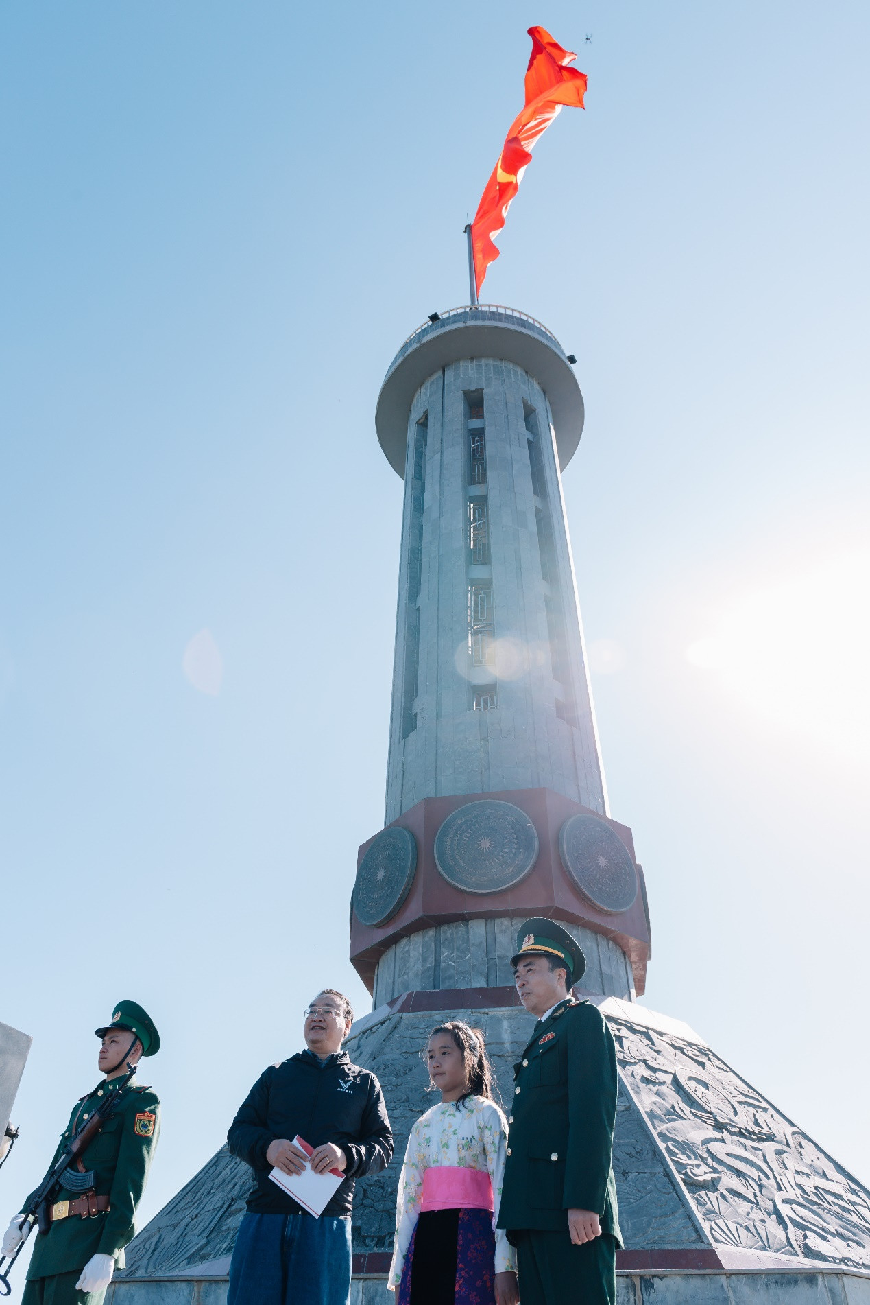 Giây phúc xúc động khi thành viên trong đoàn thực hiện nghi lễ chào cờ ở địa đầu Tổ quốc!