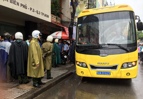 Từ nhiều hướng, các trinh sát Công an quận 3 ập vào khách sạn, cô lập các nhân viên đề phòng họ báo động. Một đoạn đường quanh khu vực được phong tỏa.