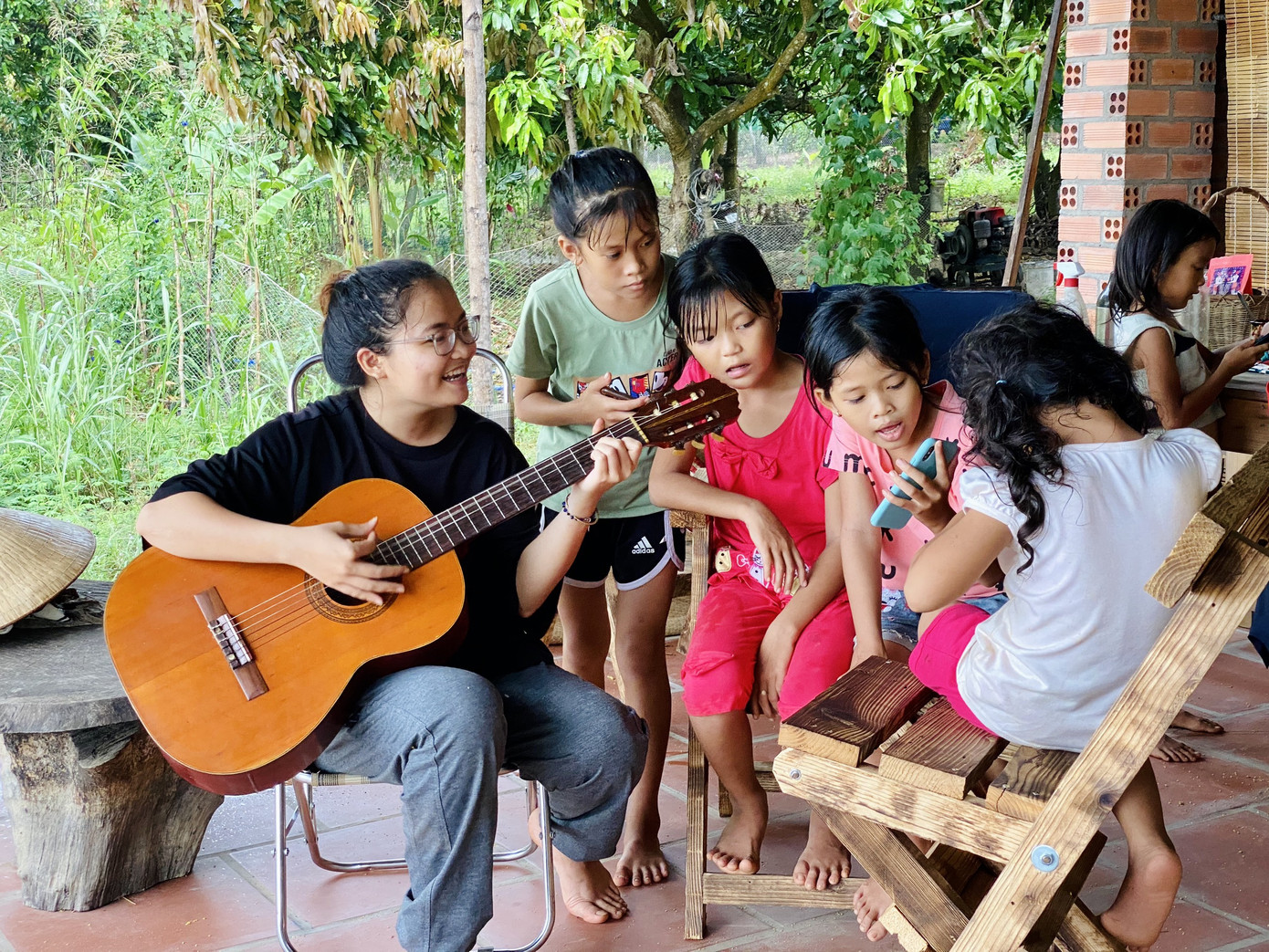 Vườn của Cường và nhóm cũng là nơi tập kết của những đứa trẻ là con em lao động nghèo sống quanh đó vào mỗi buổi chiều đi học về. Cường cho biết: “Trẻ em thành phố về đây sẽ được chơi với những đứa trẻ ở quê và chúng sẽ cùng nhau học hỏi trong không gian trang trại mở gần gũi với thiên nhiên”.