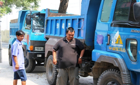 Ngay khi vừa đổ xong xe đất, anh Võ Quốc Thắng (25 tuổi, ngụ quận Thủ Đức, TPHCM) tìm chỗ đậu xe rồi vui vẻ mời chúng tôi vào quán nước cạnh đó uống ly cà phê.