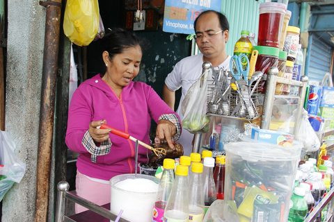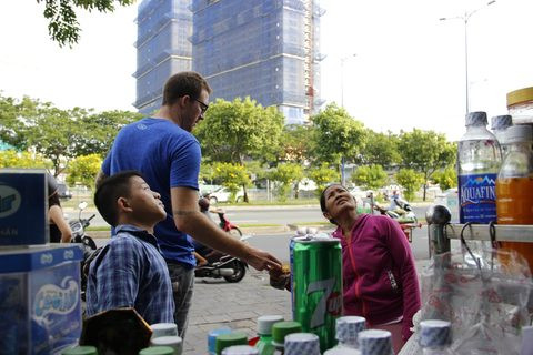 Thỉnh thoảng cũng có khách Tây ghé hàng nước của bà để mua.