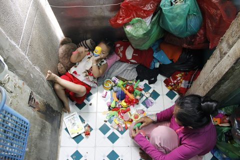 Đồ đạc hai mẹ con bà Vân không có gì đáng giá, thậm chí cái cầu thang sắt để leo lên leo xuống cũng là của hàng xóm cho. Dù vậy, một mình bà vẫn cố gắng lo cho đứa con gái 19 tuổi học được hết lớp 12; tuy nhiên hiện nay, con gái bà vẫn chưa xin được việc làm.