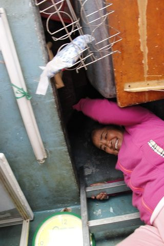 Ngang và dọc của căn nhà chỉ vỏn vẹn có 1m2, đồ đạc lại chất lỉnh kỉnh, ngay cả đứa cháu ngoại đang học mẫu giáo của bà (cháu của người chị ruột và kêu bà Vân bằng bà ngoại) nằm cũng khó khăn, nên thật khó hình dung 2 mẹ con bà Vân sẽ nằm ngủ như thế nào. Bà Vân cho biết, ngủ không thể duỗi thẳng chân. Buổi tối, đứa con gái 19 tuổi ngủ trên gác, bà chỉ còn cách kê chiếc ghế bố ngủ ngay trước cửa nhà cũng là để trông coi chiếc xe đẩy bán nước, nguồn sống duy nhất của gia đình.