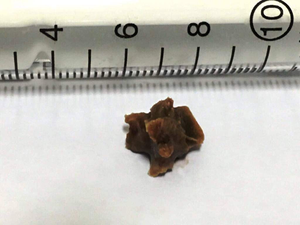 Ngày 21/4, bệnh nhân đã được nội soi phế quản ống mềm lấy được dị vật là mảnh xương hình khối (kích thước khoảng 12x13x11mm) ở phế quản thùy dưới trái. Quá trình lấy dị vật gặp phải khó khăn do xương cá nằm lâu trong lòng phế quản, gây viêm phổi nghẽn, tăng sinh mô hạt nhiều nên phải giải phóng mô hạt, súc rửa phế quản sau đó mới có thể tiến hành gắp dị vật.