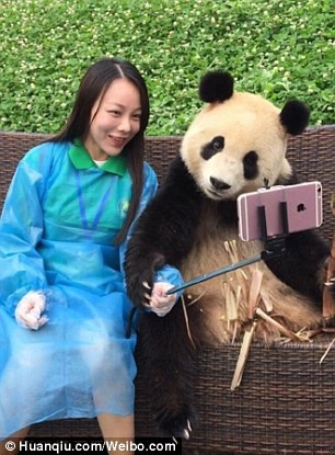 Một chú gấu trúc ở Thành Đô (Trung Quốc) đã bất ngờ trở thành tâm điểm chú ý của truyền thông nước này sau khi những bức ảnh tự sướng của chú và một nữ du khách được lan truyền trên mạng xã hội.