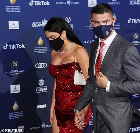 Ronaldo mặc bộ vest sang chảnh toát lên thần thái điển trai phong độ, nắm chặt tay bạn gái đến dự lễ trao giải Globe Soccer Awards diễn ra hôm qua tại Dubai.