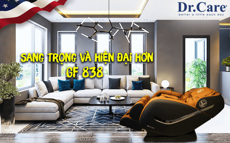 Hãng Ghế Massage Dr.Care cùng đội ngũ chuyên gia sức khỏe và các bác sỹ trị liệu tại Mỹ (Hoa Kỳ), đã cho ra đời mẫu ghế massage trị liệu DR-GF 838, giúp chúng ta chăm sóc sức khoẻ ngay tại nhà và không còn lo lắng bệnh tật nữa.
