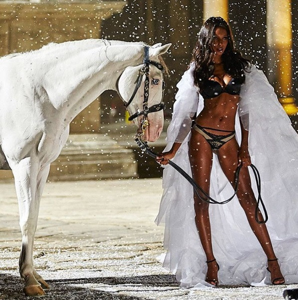 "Thiên thần" da nâu Jasmine Tookes lãng mạn giữa khung cảnh tuyết rơi.