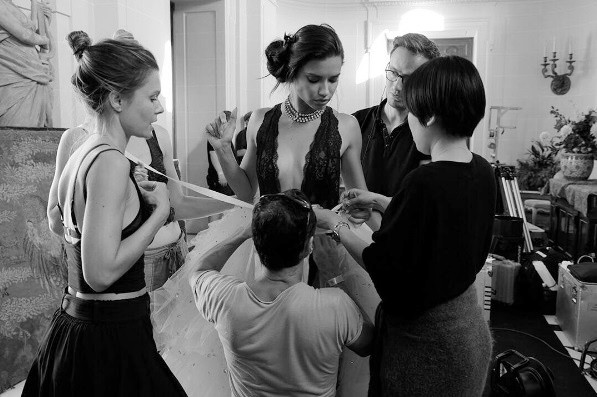 Các stylish đang chỉnh sửa váy áo cho mỹ nhân xứ Samba - Adriana Lima.
