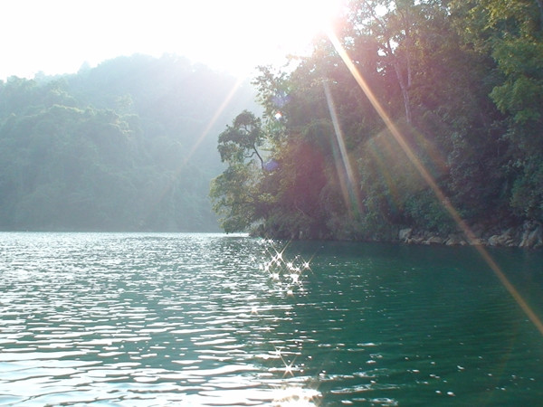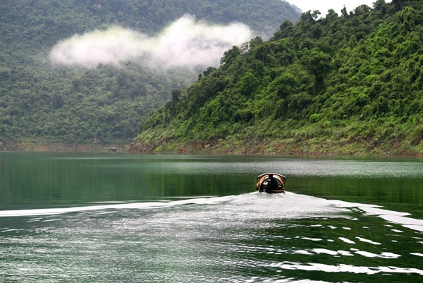 Thủy điện Tuyền Quang đã biến một phần của sông Gâm và sông Năng thành long hồ mênh mông. Ngay khi vừa đặt chân tới, tôi đã không thể khước từ lời mời du ngoạn bằng thuyền của người bạn "thổ dân". Thứ nước màu lục sóng sánh, trong vắt, soi bóng núi non và