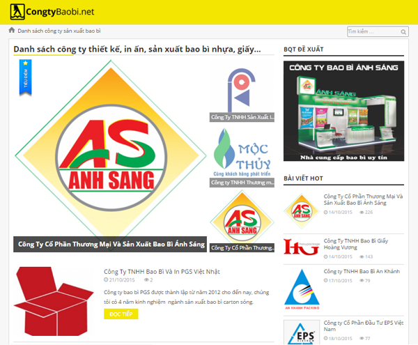 Hiện nay, đi cùng sự bùng nổ của ngành sản xuất hàng tiêu dùng, congtybaobi.net chính là trang danh bạ dẫn đầu về thị trường sản xuất và cung ứng bao bì tại Việt Nam.