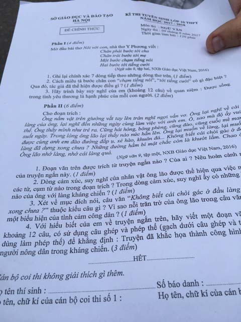 Dưới đây là gợi ý giải đề thi môn Ngữ Văn kì thi vào lớp 10 tại Hà Nội sáng nay (9/6) của thầy Nguyễn Phi Hùng (giáo viên trường THPT Anhxtanh và Hệ thống Giáo dục HOCMAI).
