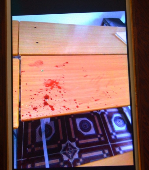 Tại đây, sau khi nói chuyện, Đoàn bất ngờ dùng tay đấm còn Đề cầm chiếc ghế gỗ 4 chân để ném thầy Thủy khiến nạn nhân bị chảy máu mũi, gục xuống tại chỗ. Hai thanh niên rời khỏi hiện trường. Còn thầy Thủy được các thầy cô giáo trong trường đưa đến Bệnh viện Đa khoa Phủ Diễn cấp cứu trong tình trạng máu mũi chảy ra liên tục.
