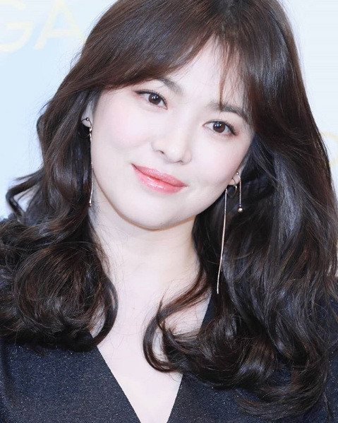Song Hye Kyo sử dụng tóc giả uốn lọn nhẹ nhàng đơn giản.