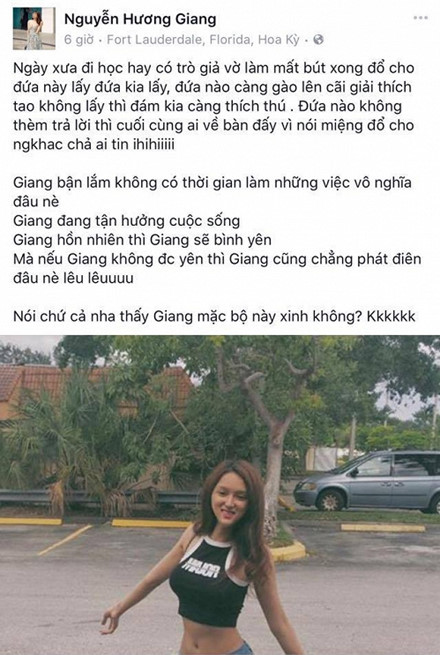 Lúc đó, Hương Giang Idol từ chối bình luận về vụ việc vì đang ở Mỹ.