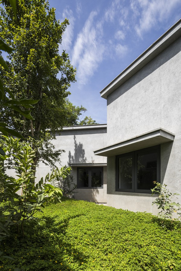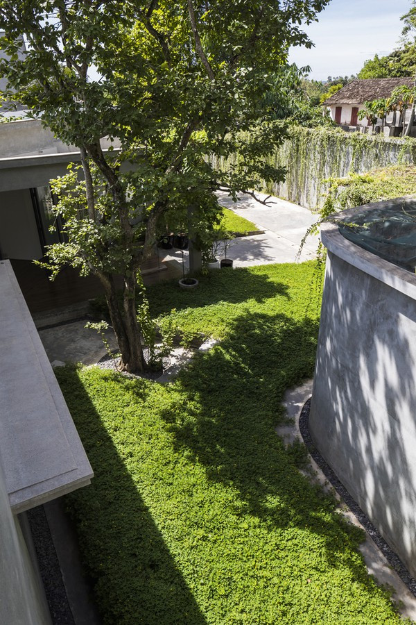 Chủ nhà vẫn muốn được tận hưởng không khí trong lành của khu vườn xưa, vì thế toàn bộ số cây thân gỗ trong khu đất được giữ nguyên, làm khung chính để phát triển không gian của ngôi nhà.