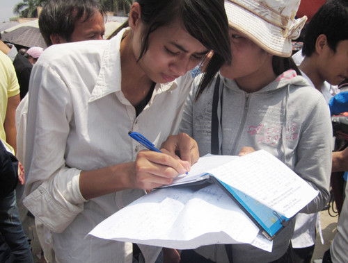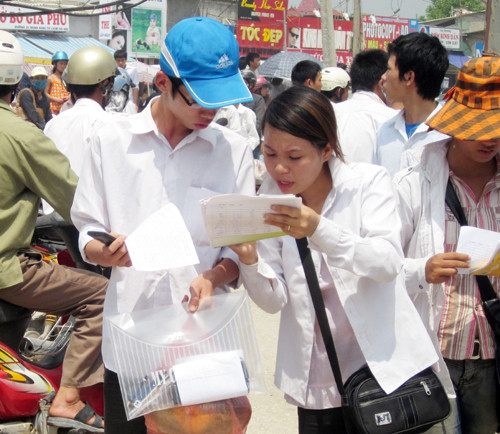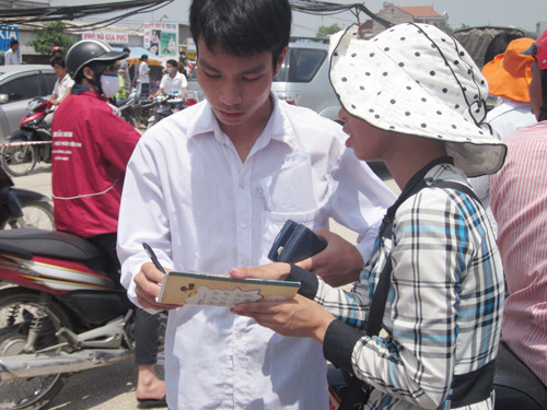 Theo ghi nhận của tôi, chỉ trong một lúc mà rất nhiều thí sinh và phụ huynh đã bị chúng lừa gạt. Khi tôi tiếp cận những đối tượng này để chụp ảnh thì bị 2 đến 3 người đổ xô đến quây lại không cho chụp. Khi tôi đến hỏi họ là người của tổ chức nào, có giấy tờ gì không thì những người này văng ra những lời lẽ rất lăng mạ thô tục và khó nghe, thậm chí còn dọa đánh.