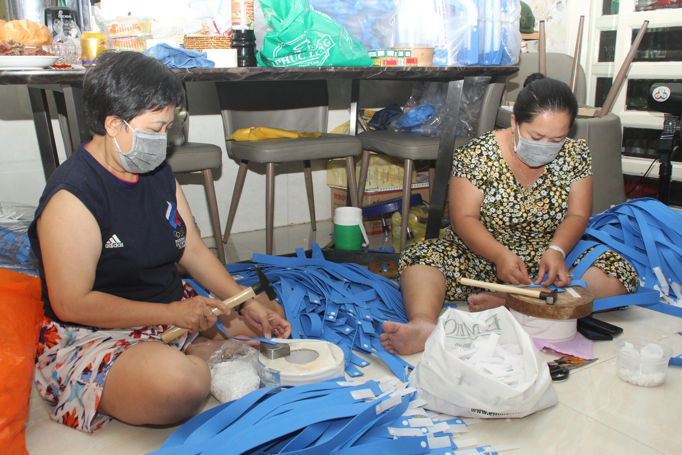 Bác sĩ Đỗ Phạm Nguyệt Thanh cho biết thêm, ngoài các thành viên trong gia đình như mẹ, bác, các cháu thì còn có sự tham gia của những người nhân viên đang làm việc tại cơ sở kinh doanh của gia đình. Trong những đợt giãn cách xã hội như thế này, khi không thể về quê được, các anh chị ở lại thành phố và hỗ trợ gia đình Thanh làm nên các sản phẩm, công cụ phòng chống dịch.