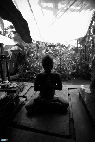 Bé Hạnh học ngồi thiền do bố chỉ dạy. Ngày nào cô bé cũng làm như vậy khoảng một tiếng.