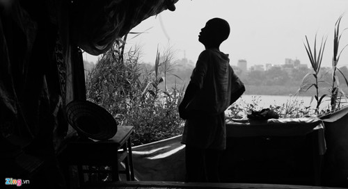 Một gia đình gồm hai vợ chồng, con gái nhỏ lánh xa người thường, ngày ngày không mặc quần áo, cạo trọc đầu sinh hoạt tại ngôi nhà tạm trên bãi sông Hồng (quận Long Biên, Hà Nội).