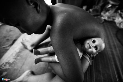 Năm nay, dù đã 7 tuổi nhưng Hạnh vẫn thích ngậm ti mẹ như đứa trẻ sơ sinh.