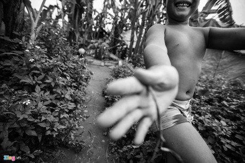 Mỗi khi mát trời, Hạnh lại vui vẻ tự tung tăng vui chơi một mình trước sân nhà.