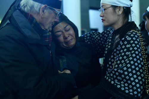 Trước những lời chia buồn từ bạn bè, người thân, chị Lê Y Linh gục vào vai chồng khóc.