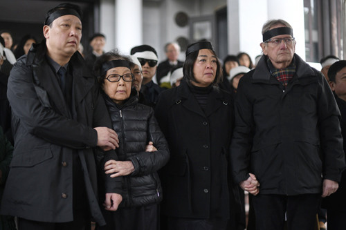 Con gái nhạc sĩ Hoàng Vân - chị Lê Y Linh - là tiến sĩ âm nhạc, đang định cư tại Pháp. Chị thẫn thờ nhìn di ảnh của bố. Chồng Lê Y Linh luôn túc trực bên vợ.