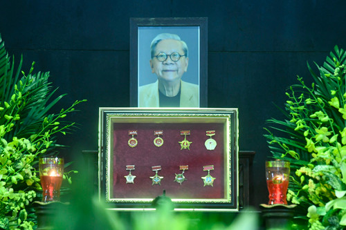 Đám tang nhạc sĩ Hoàng Vân diễn ra tại Nhà tang lễ Bộ quốc phòng, số 5 Trần Thánh Tông, Hà Nội. Ông qua đời hôm 4/2, hưởng thọ 88 tuổi.