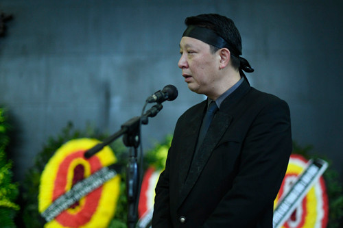 Con trai nhạc sĩ kìm nén xúc động khi đọc điếu văn.