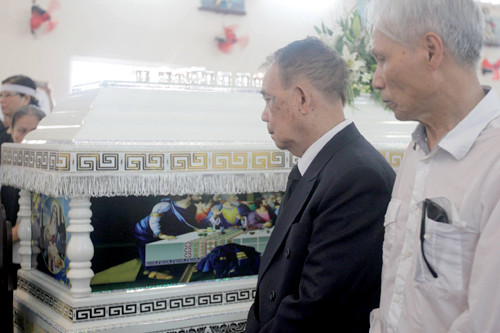 Thỉnh thoảng, cụ chỉ tay về bức chân dung Minh Thuận được đặt trên sân khấu đơn sơ - nơi diễn ra buổi hát tiễn biệt của bạn bè, đồng nghiệp dành cho cố ca sĩ. Môi ông khẽ run và mắt như muốn nói điều gì với con.