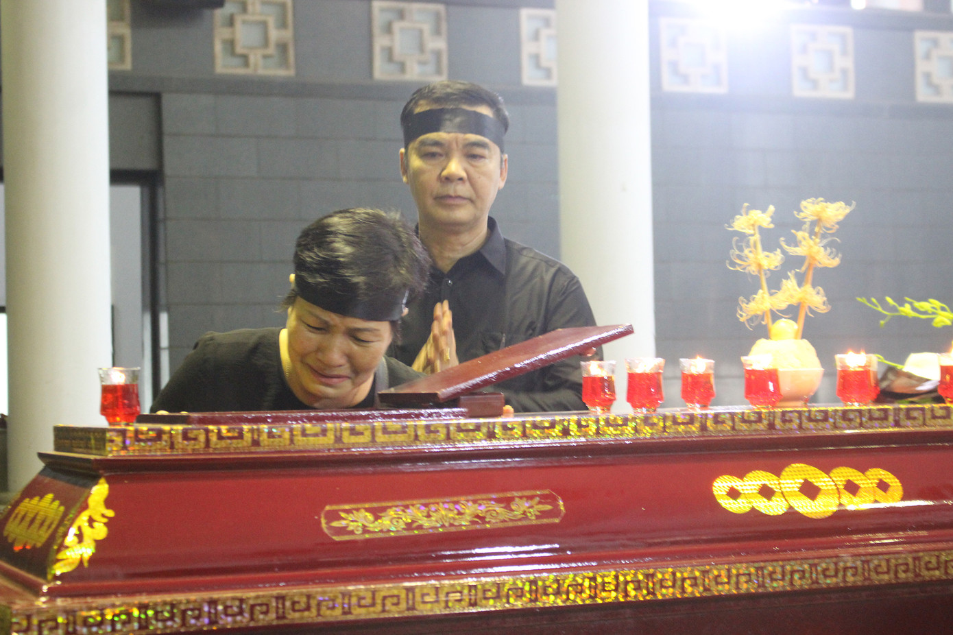 Gia đình cố nghệ sĩ không kiềm nổi nước mắt trước sự ra đi của người mẹ, người bà thân yêu.