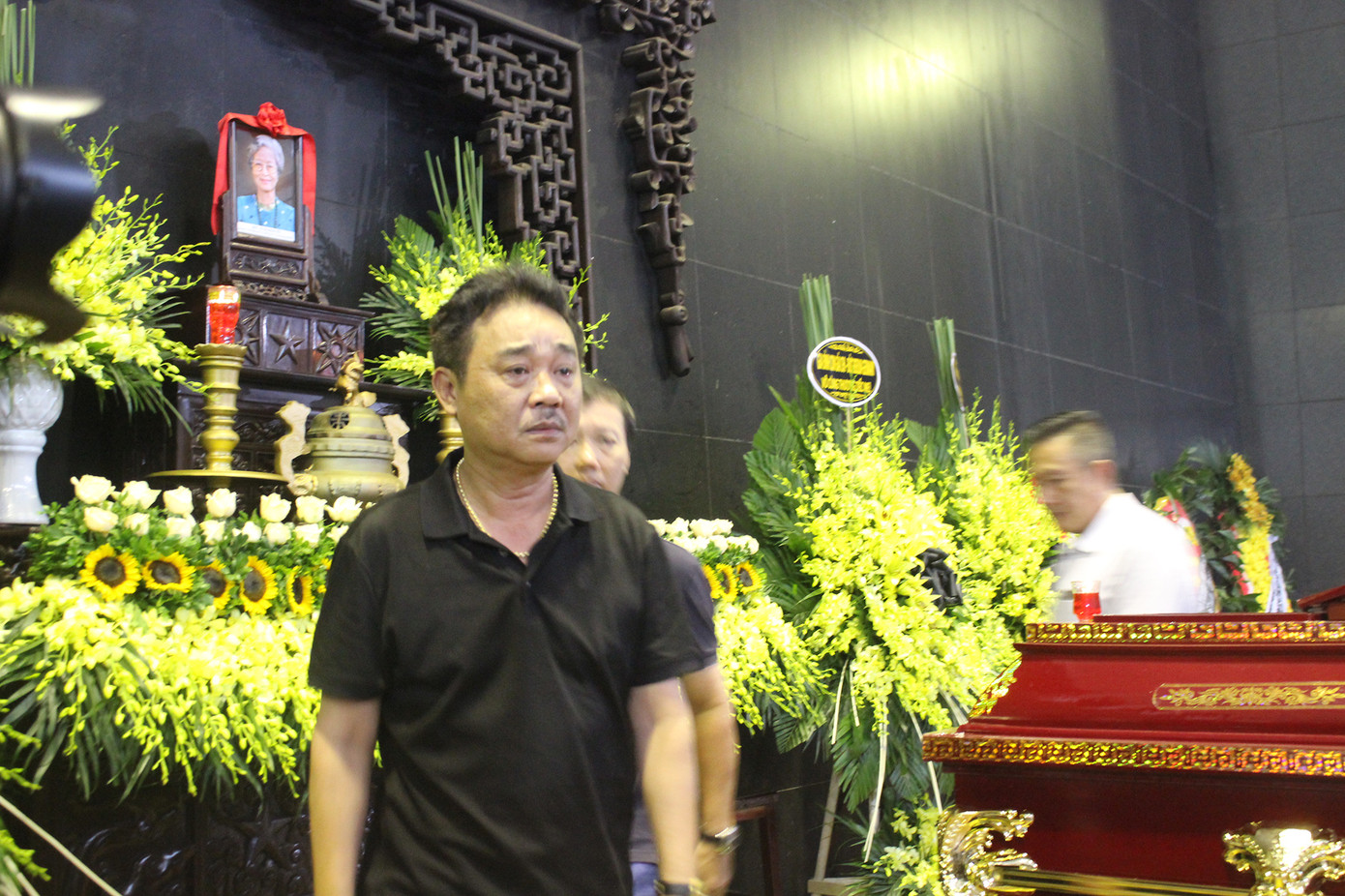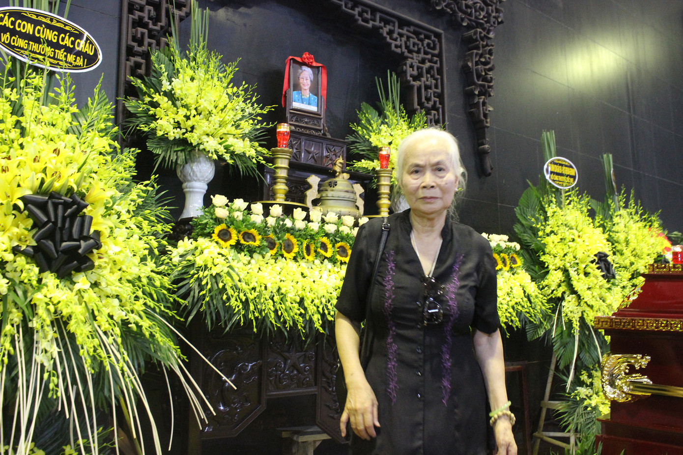 Nghệ sĩ Ngọc Thoa rưng rưng xúc động tại lễ tang.