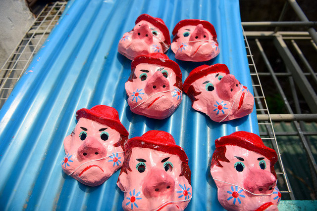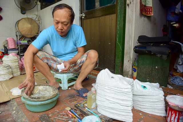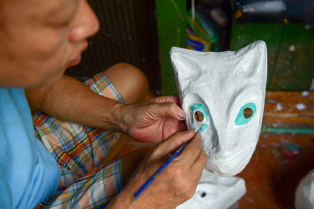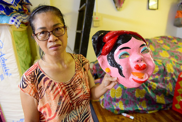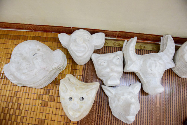 Học nghề từ bố vợ, đến nay, ông Hòa đã có 36 năm gắn bó với nghề làm mặt nạ giấy bồi.
