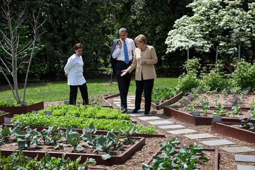 Tổng thống Obama dẫn Thủ tướng Đức, Angela Merkel, đi thăm khu vườn rau.